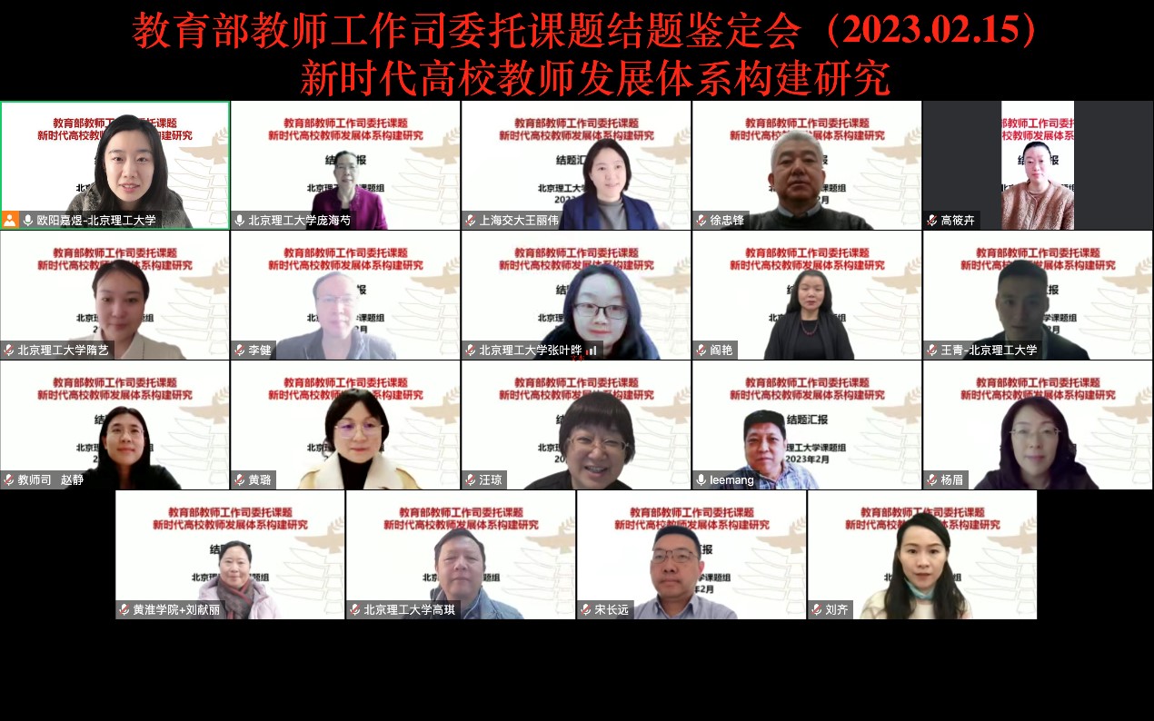 2023年2月15日上午,由北京成人头条课题组承担的教育部教师工作司委托课题“新时代高校教师发展体系构建研究”结题鉴定会顺利举行。