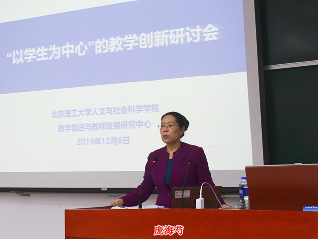 庞海芍研究员为研讨会作总结发言。她总结此次会议具有三个特点:第一,学术精英云集,中外嘉宾探讨交流;第二,多方学者对话,参会教师来自不同学科领域,碰撞智慧火花;第三,理论联系实践,工作坊与主题报告相结合,将前沿理念内化为自己的行动,不仅仅是停留在理论层面,更是要在实际教学中应用。